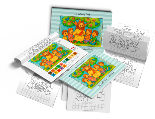 Coleção digital com 39 ilustrações bíblicas para imprimir, colorir e ensinar valores cristãos.